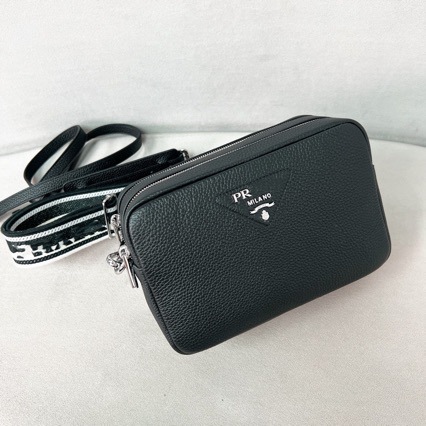 P ラダ ペブルド牛革 ショルダー レディース クロスボディバッグ 刺繍ロゴ ショルダーストラップ カメラバッグ 高品質 1BH082