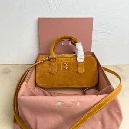 miu 24 秋冬新作 ヌバック牛革 ボストンバッグ レトロ スモール スクエアバッグ ポータブルピローバッグ 5BB142