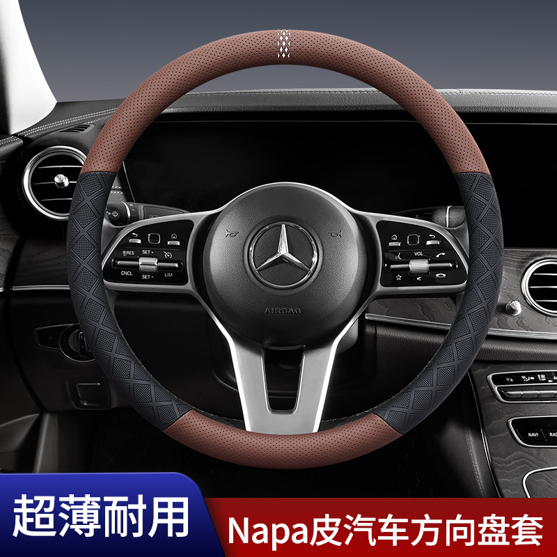 車のハンドルカバーナパレザー通気性吸汗性滑り止め超薄型オールシーズンユニバーサルハイエンドハンドルカバートランスボーダー