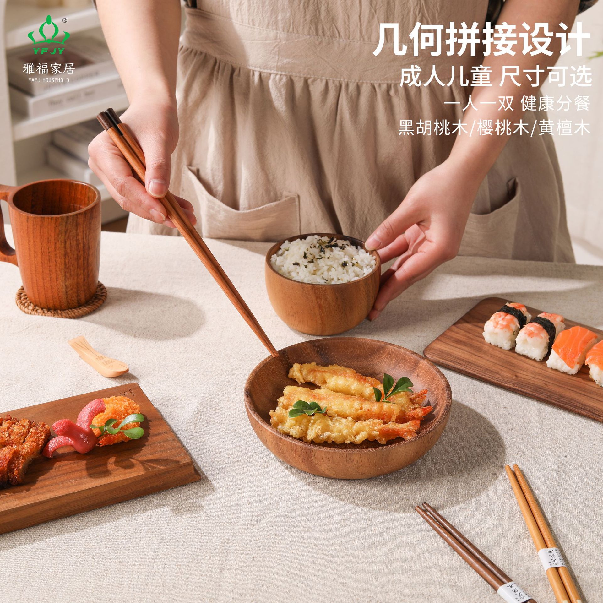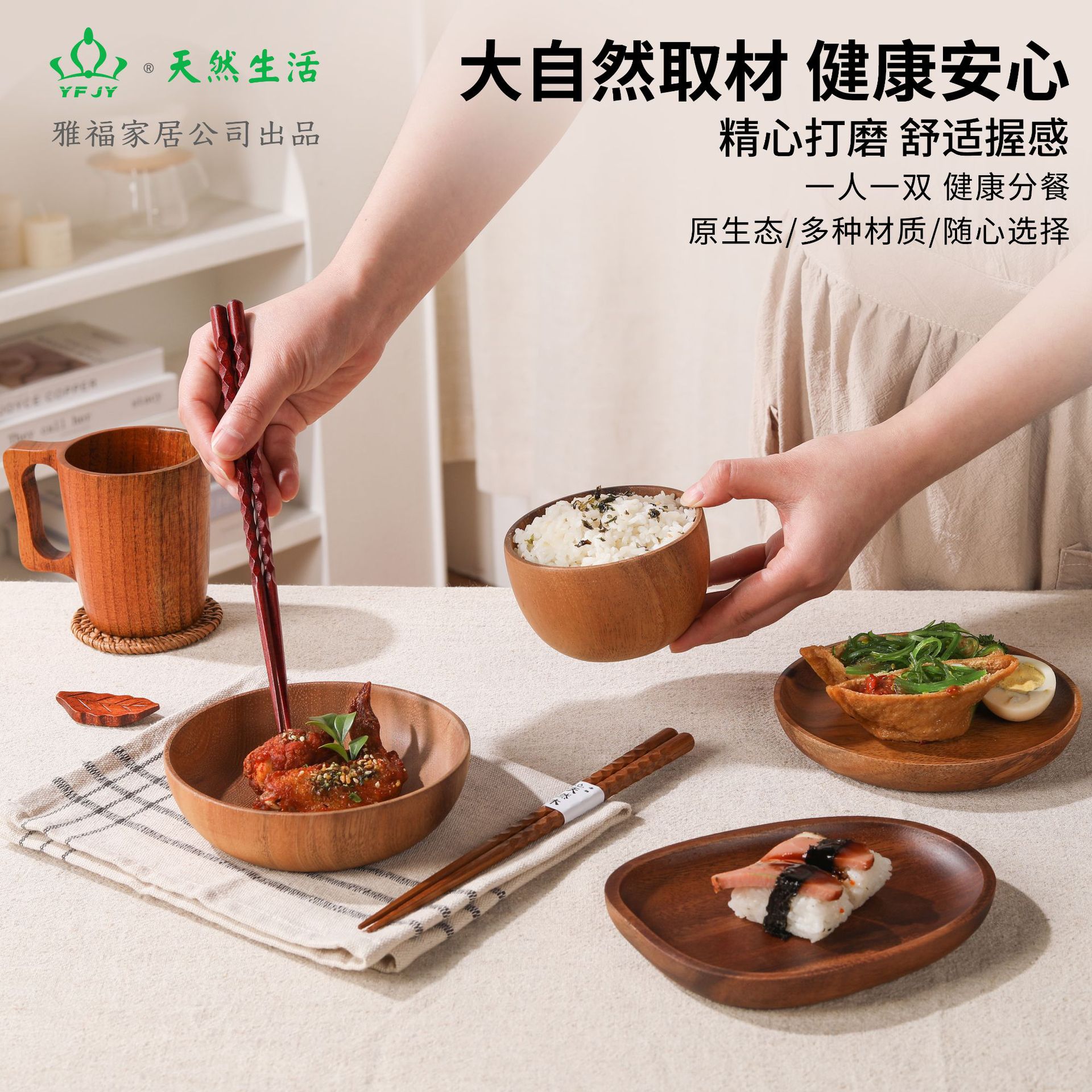 YFJY 越境木製食器和風箸家庭用お手入れ簡単食器箸セット無垢材屋外便利な食器