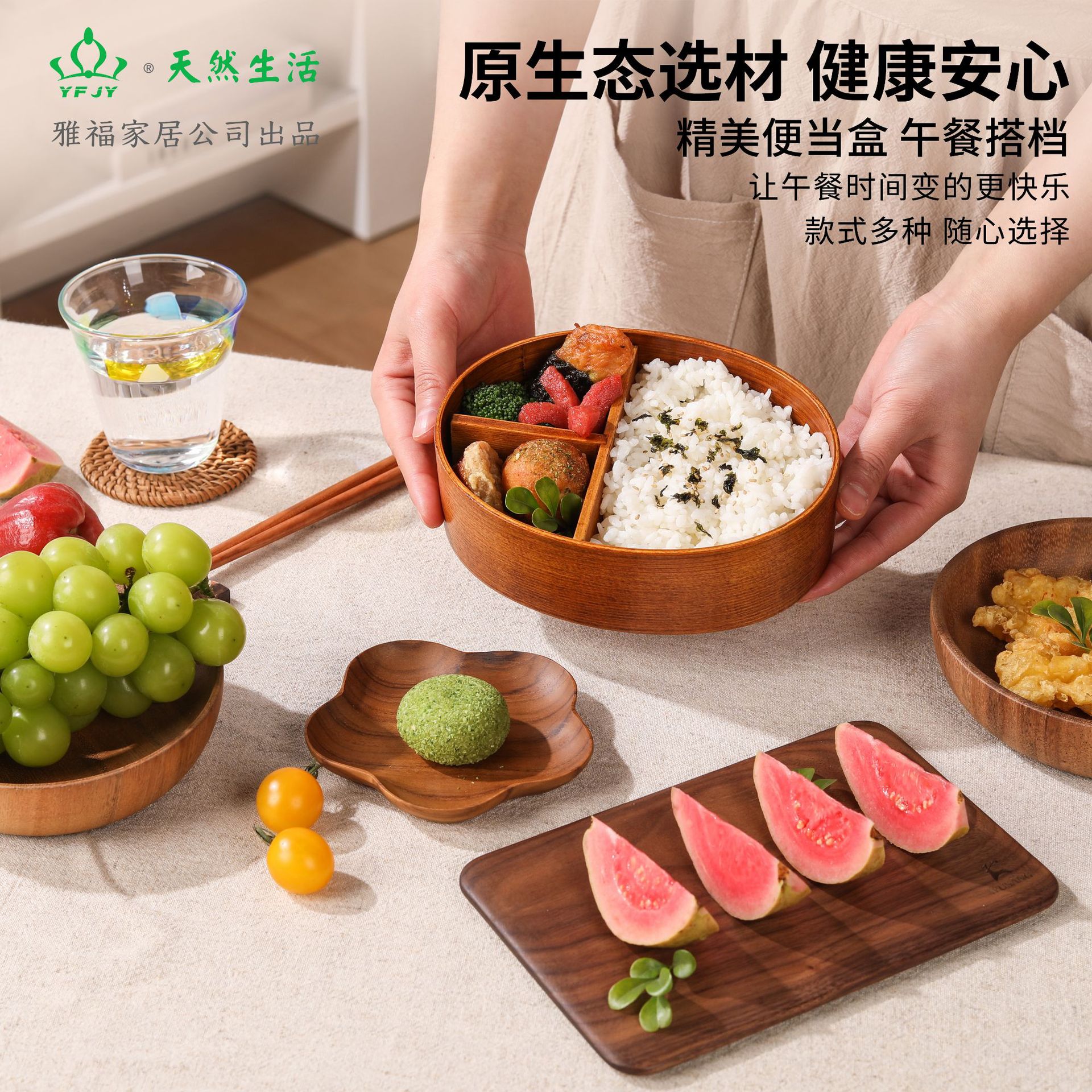 YFJY 日本食器の国境を越えた輸出 和風無垢材弁当箱 防カビ 高価値仕切り付き アウトドア弁当箱