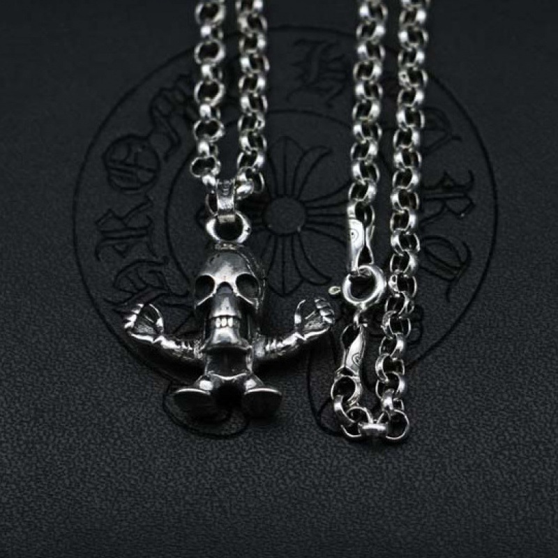 痞帥純銀3dスカルペンダント男女ブーム欧米ヒップホップ青年ロングアクセサリー泰銀ネックレス