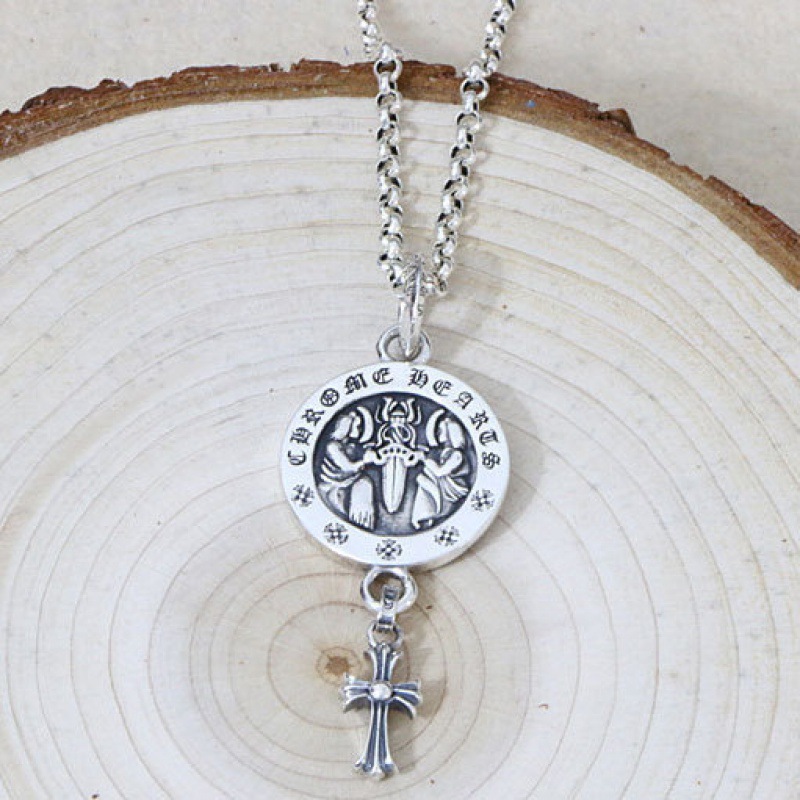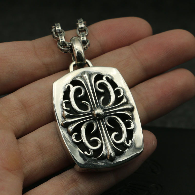 925純銀クロスコインペンダント男性ファッションパンク欧米セーターチェーン女性ファッションペンダント