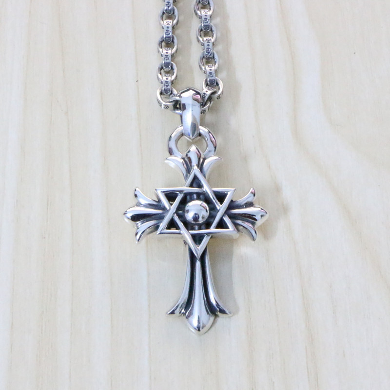 925純銀クロス六芒星ペンダント男個性太いチェーンアクセサリー日韓ファッションネックレス女