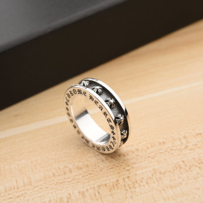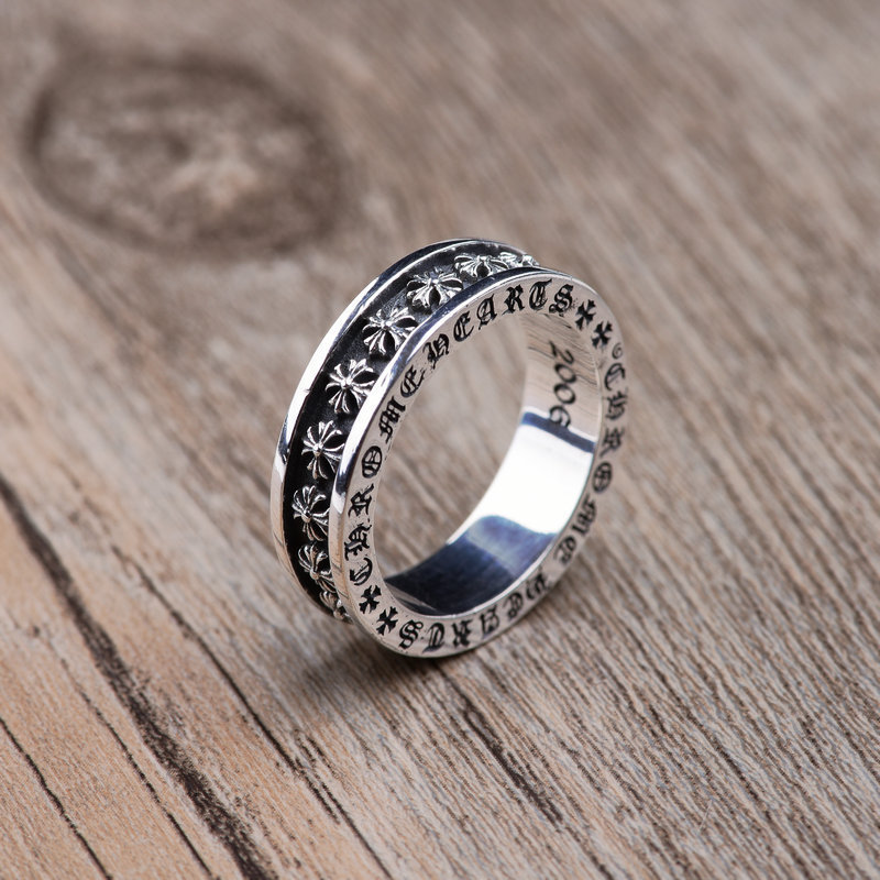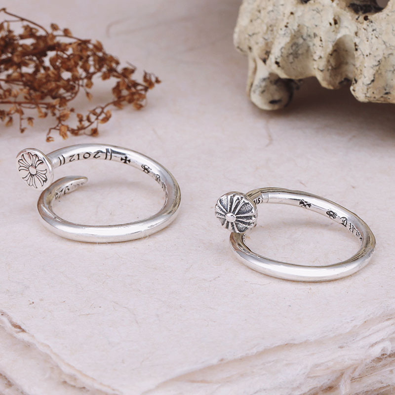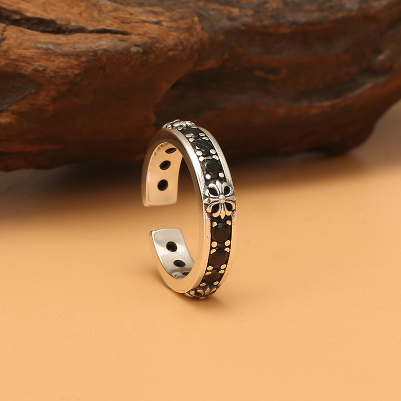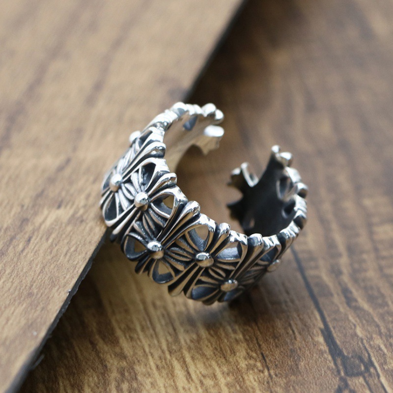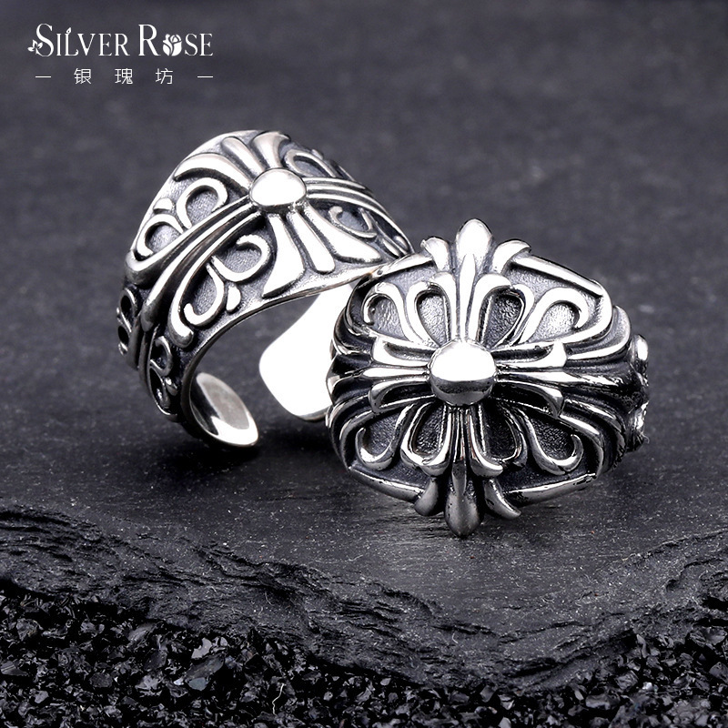 痞帅泰銀オリジナルの指輪925純銀白ドリル指輪男開口十字花rain指輪幅