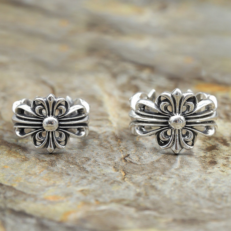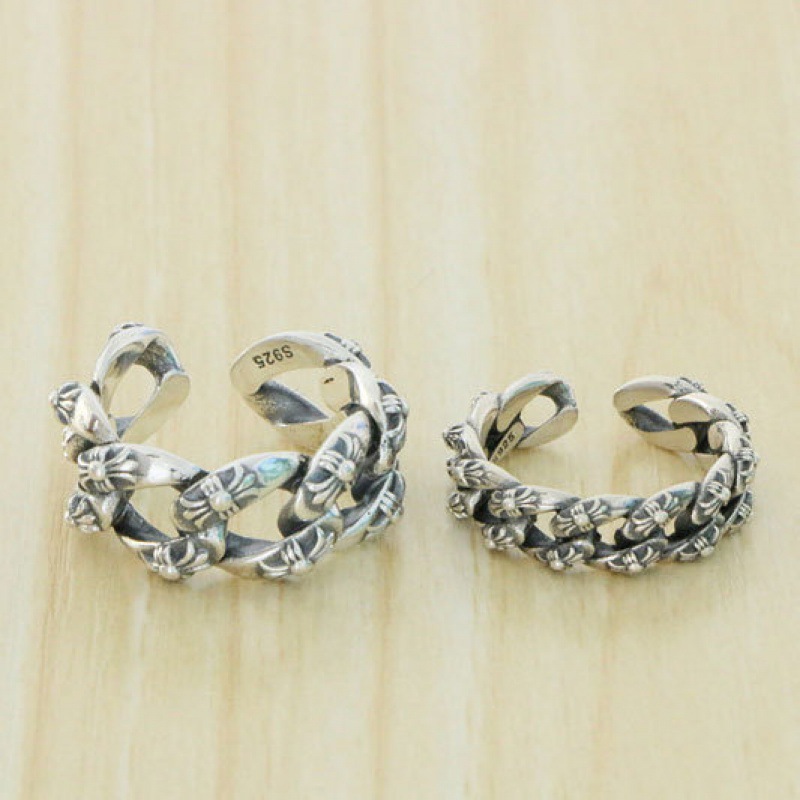 痞帥創意個性人差指環泰銀流行ビジネスアクセサリーカップルの十字花純銀指輪