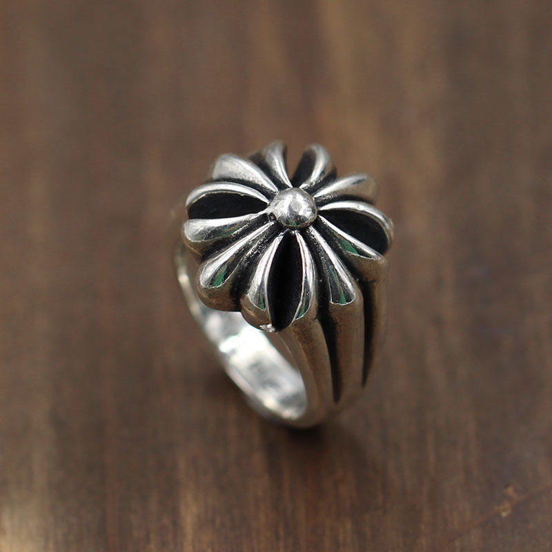 古典的な純銀人差し指の指輪の女性の潮人のヒップホップの街頭の十字架の泰銀の装飾品の十字の花の指の輪の男