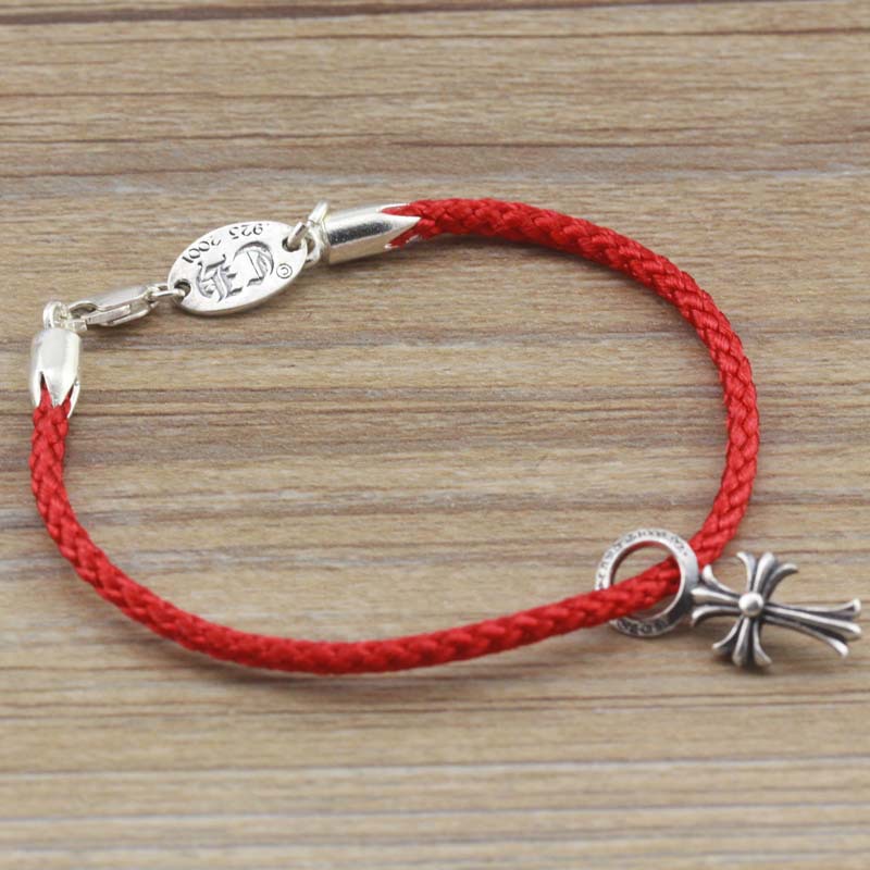 ごろつきのハンサムなカップルの日韓版の赤い手の縄s 925純銀の十字架のペンダントのブレスレットGD銀の皮の縄のペンダント