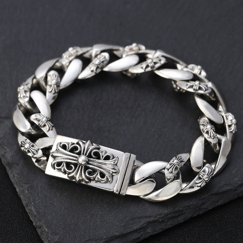 卸売りs925純銀アクセサリー流行クロスファッション男性泰銀レトロ個性クロスブレスレット