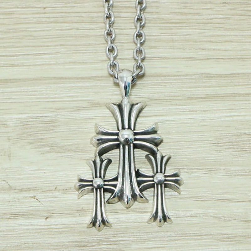 パンク風925純銀ネックレス男女が古い復古三クロスペンダントカップルのファッションヒップホップがぶら下がっている