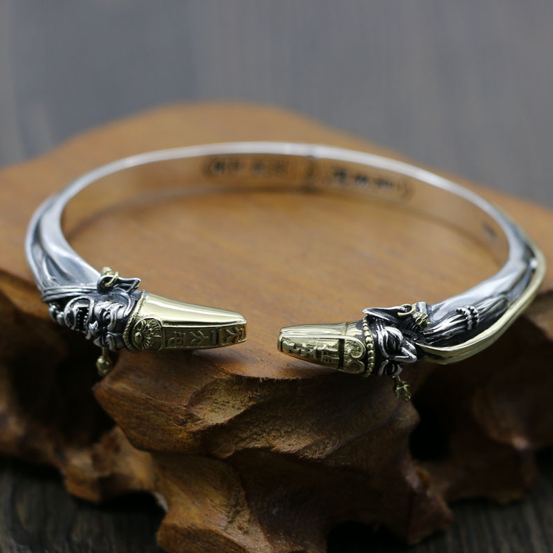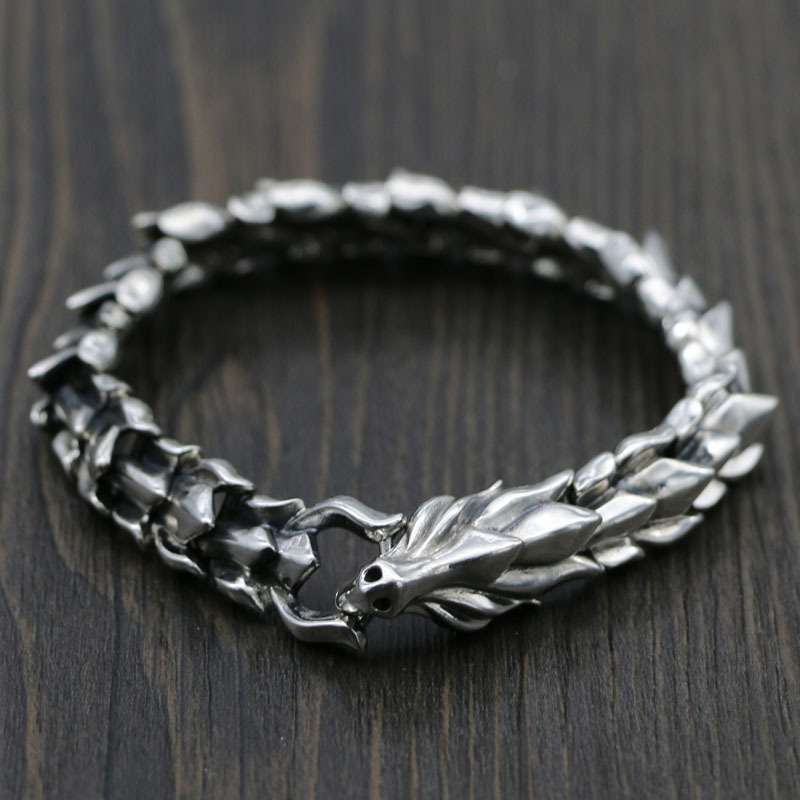S925純銀泰銀個性誇張炎竜骨パンクブレスレット粗暴頭神獣創意手環メンズ