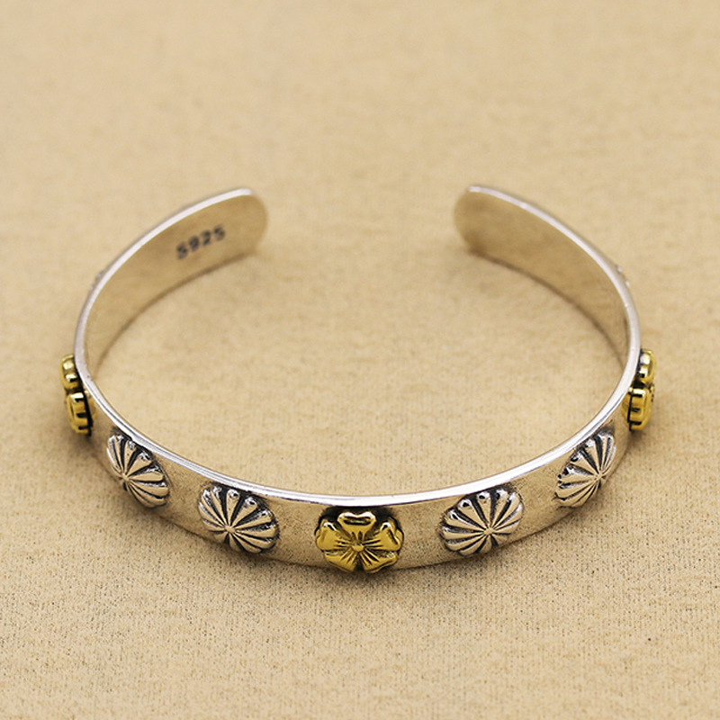 925純銀高橋吾郎十字薔薇花開口ブレスレット韓国版泰銀余文楽同項潮人卸売り