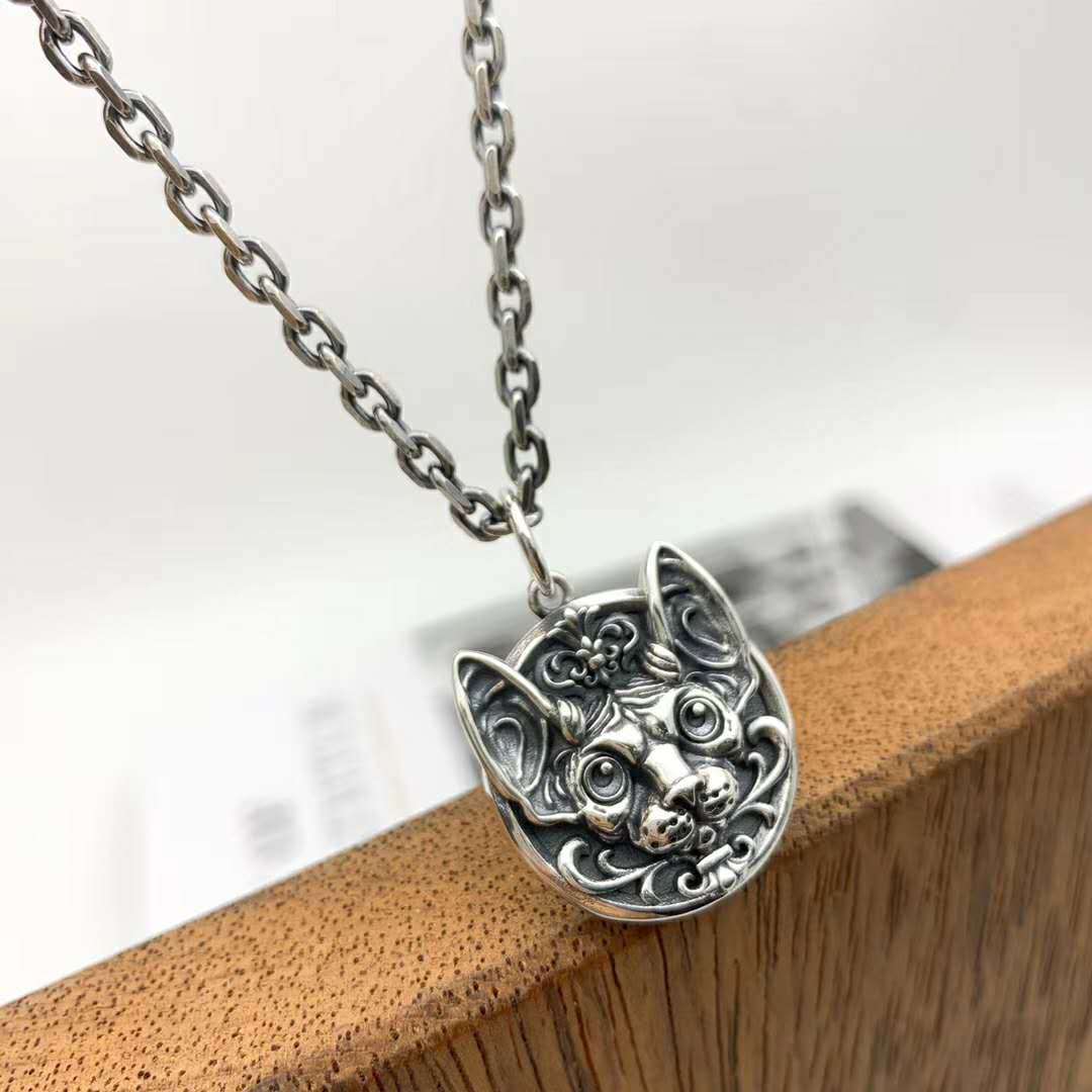 純銀ペルシャ猫ペンダントペンダント個性レトロ個性パンク風ヒップホップクールアクセサリーセーターチェーンネックレス