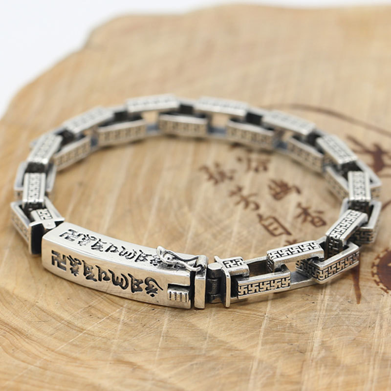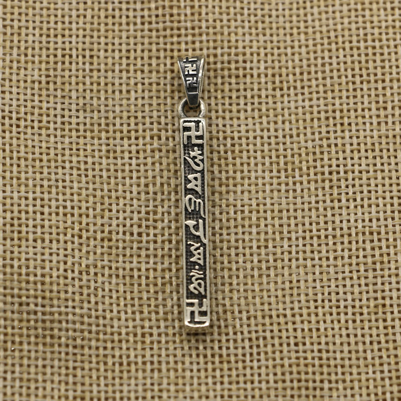 レトロ六字真言純銀ペンダントネックレスファッション民族風チェーン男ペンダントシンプル