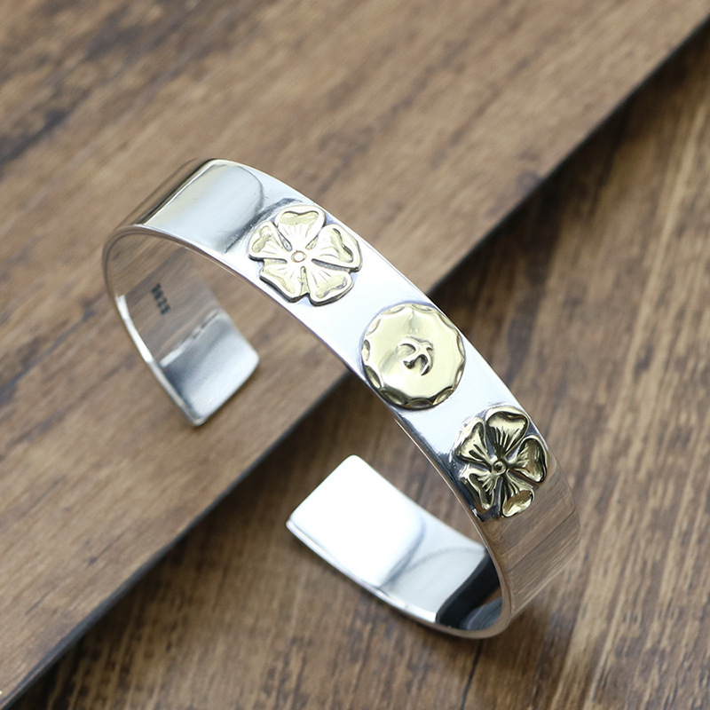 シンプルなファッション高橋平打三花鷹ブレスレット925純銀個性ファッション男女百合開口ブレスレット