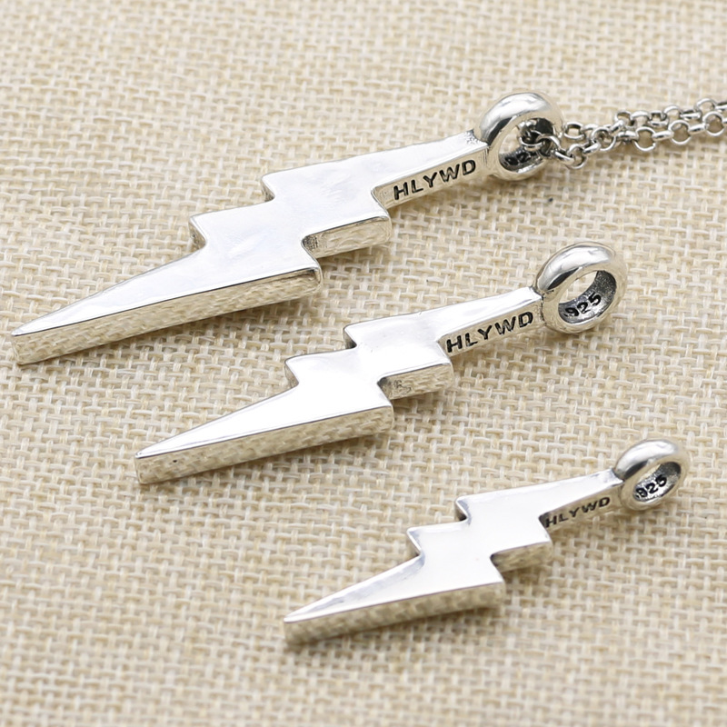 925純銀稲妻ペンダント男性個性潮人ヒップホップチェーン長型セーターチェーンネックレス男性シンプル風