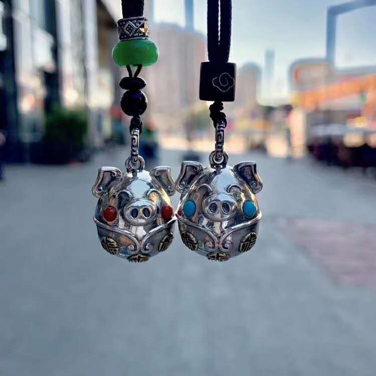 純銀福気豚ネックレスペンダント民族風アクセサリーバッグキーホルダーペンダント招財風鈴車掛け