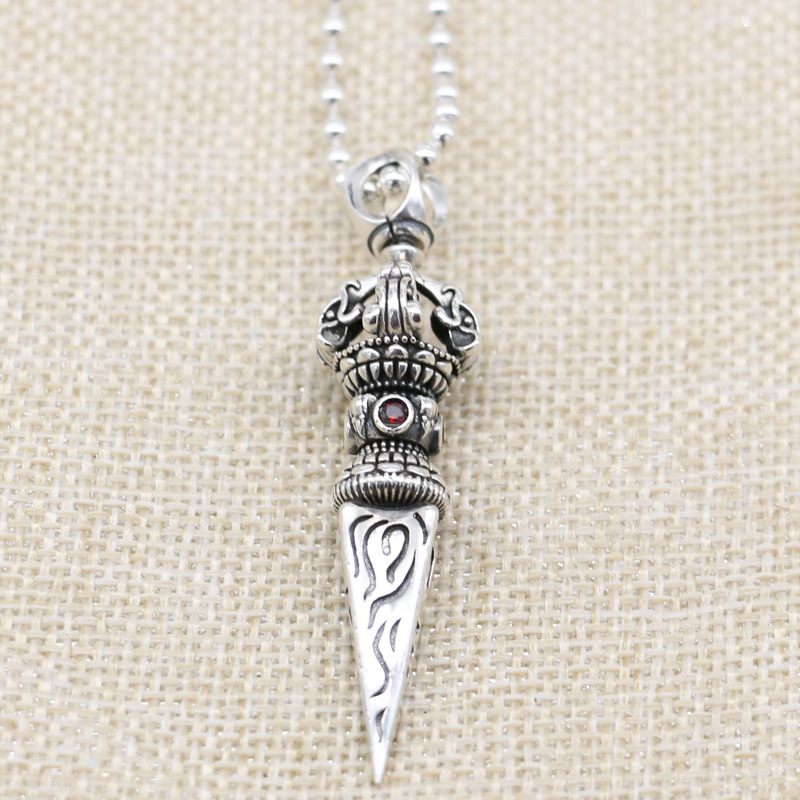 S925純銀金剛降魔杵ペンダントレトロ赤ドリル龍杵ペンダント男女個性ペンダント特価