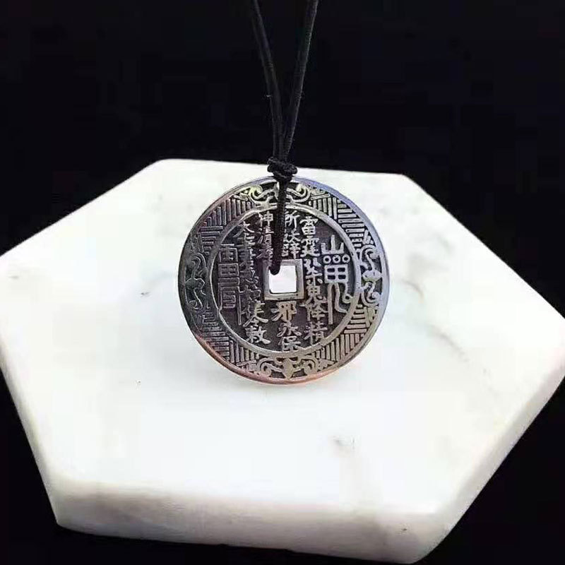 純銀レトロ精雕山鬼金銭銭ペンダントネックレスレトロ泰銀ペンダント