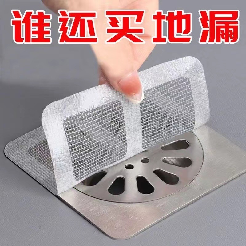 浴室の床には使い捨ての毛髪止め網が貼ってあります。