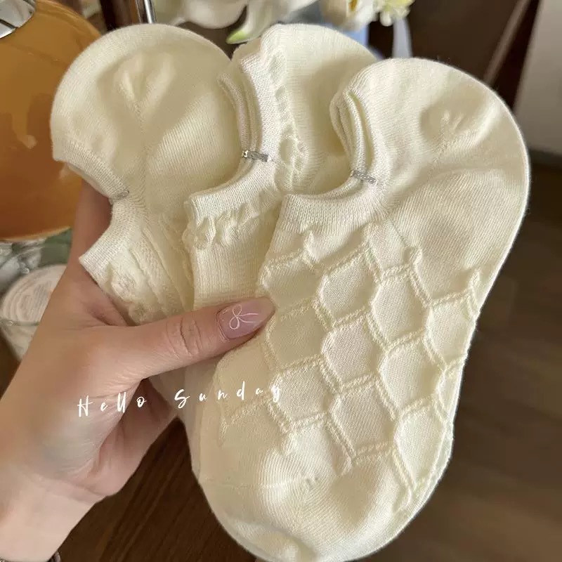 白ショートソックスレディースパンプスショートソックス夏シンプルボートソックス通気性薄いins潮中ソックス女性