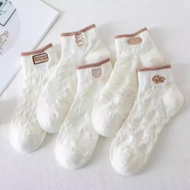 かわいい万能ソックス 女性用 夏用 白 通気性のある綿製ショートソックス カレッジスタイル 女子 スポーツソックス インス風 フレッシュ