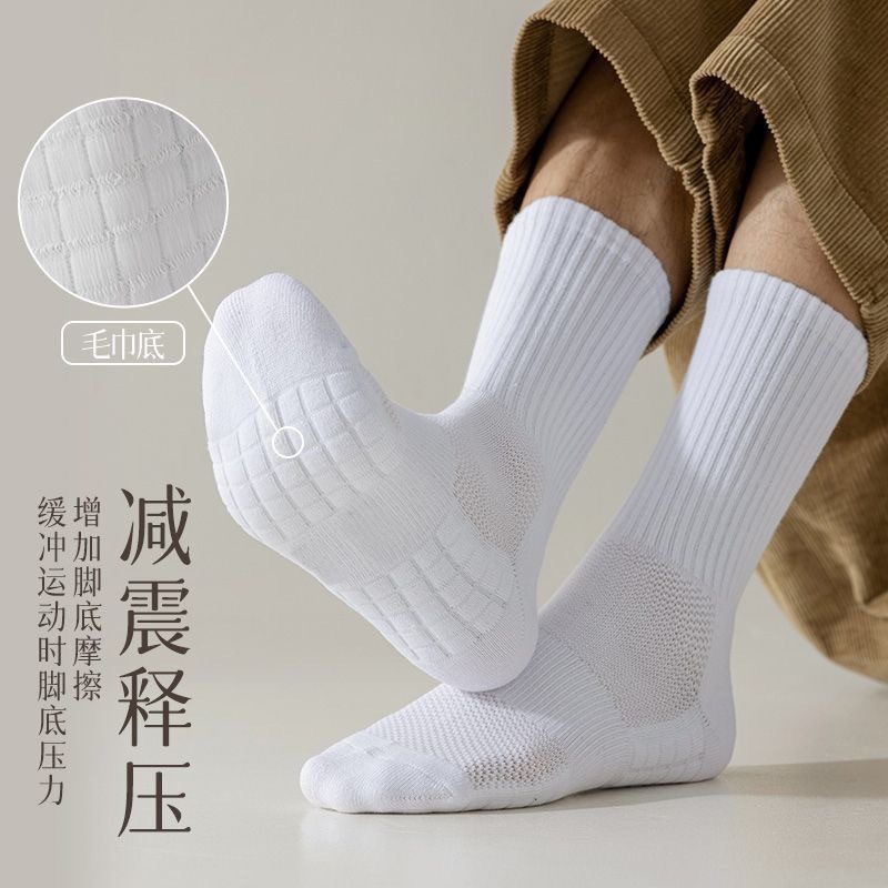 10足組 メンズ ミッドカーフソックス スポーツ マッサージソール 秋冬 男性用 ショートソックス 白黒 無地 2025年新作