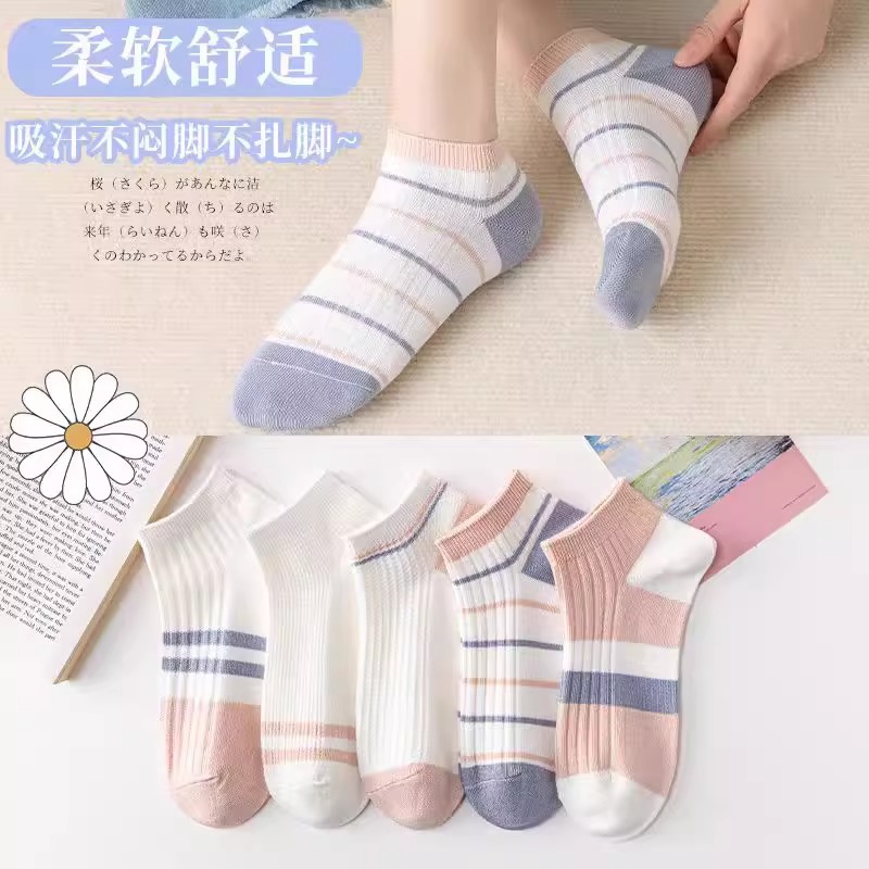 靴下 レディース 夏 薄手 ショートソックス 学生 パープル ストライプ かわいい 和風 万能 小さめ フレッシュ ガールズ ボートソックス ホワイト