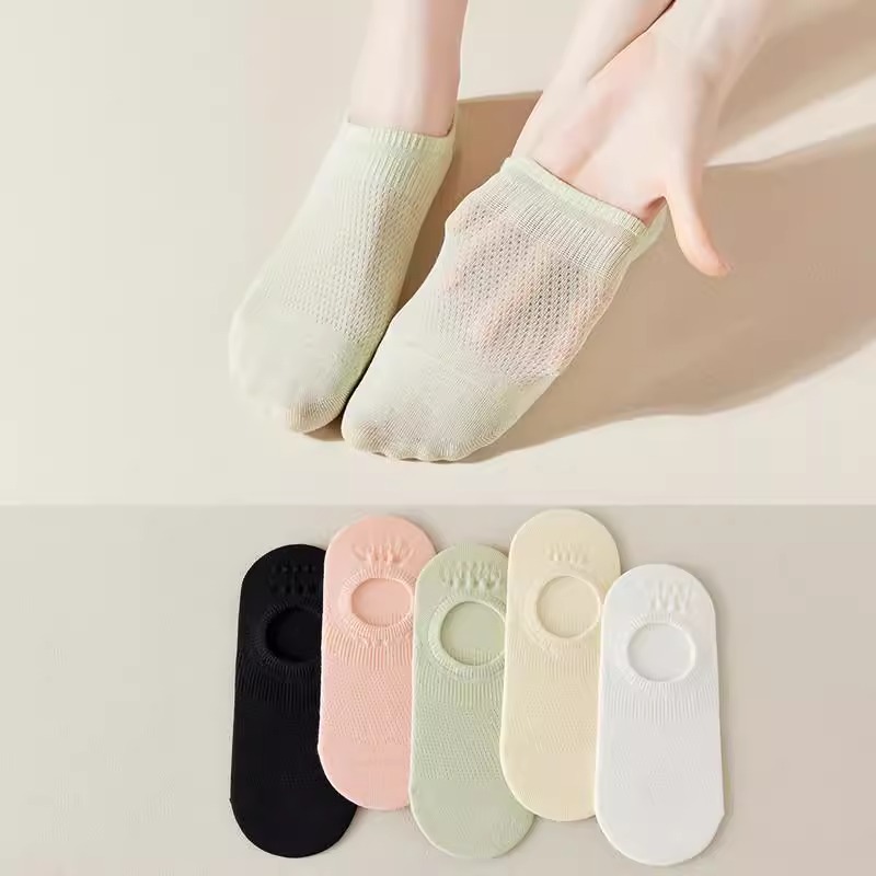 女性用メッシュボートソックス、滑り止め、脱落防止、通気性のある夏用薄手ソックス、浅い口の見えないソックス、女性用夏用無地ソックス