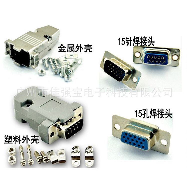 Hdb15p vgaオスメス3列15ピン溶接継手コンピュータプラグ成形シェルコネクタ