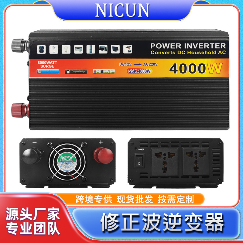 NICUN車載インバーター12v 24v回転110v 220v家庭用電源変換器4000wデジタル表示美規
