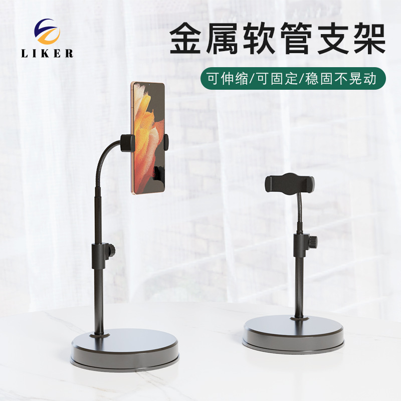 金属ホースデスクトップ生放送携帯電話スタンド怠け者スタンド加重ベース生放送追劇自由回転金属