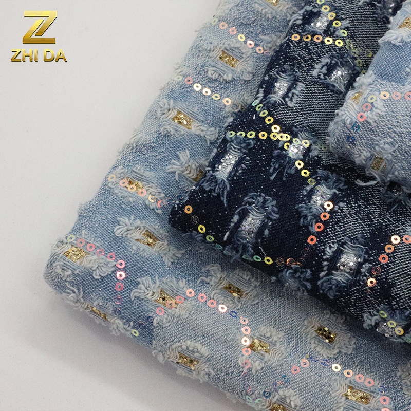デニム生地六角形ビーズパンチングファブリックポリエステル綿ビスコース繊維ファッションズボンバッグ手提げ袋