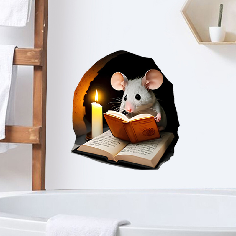 3D破壁かわいい読書ネズミ穴シールトイレ玄関階段タイル壁面装飾壁貼りアマゾン