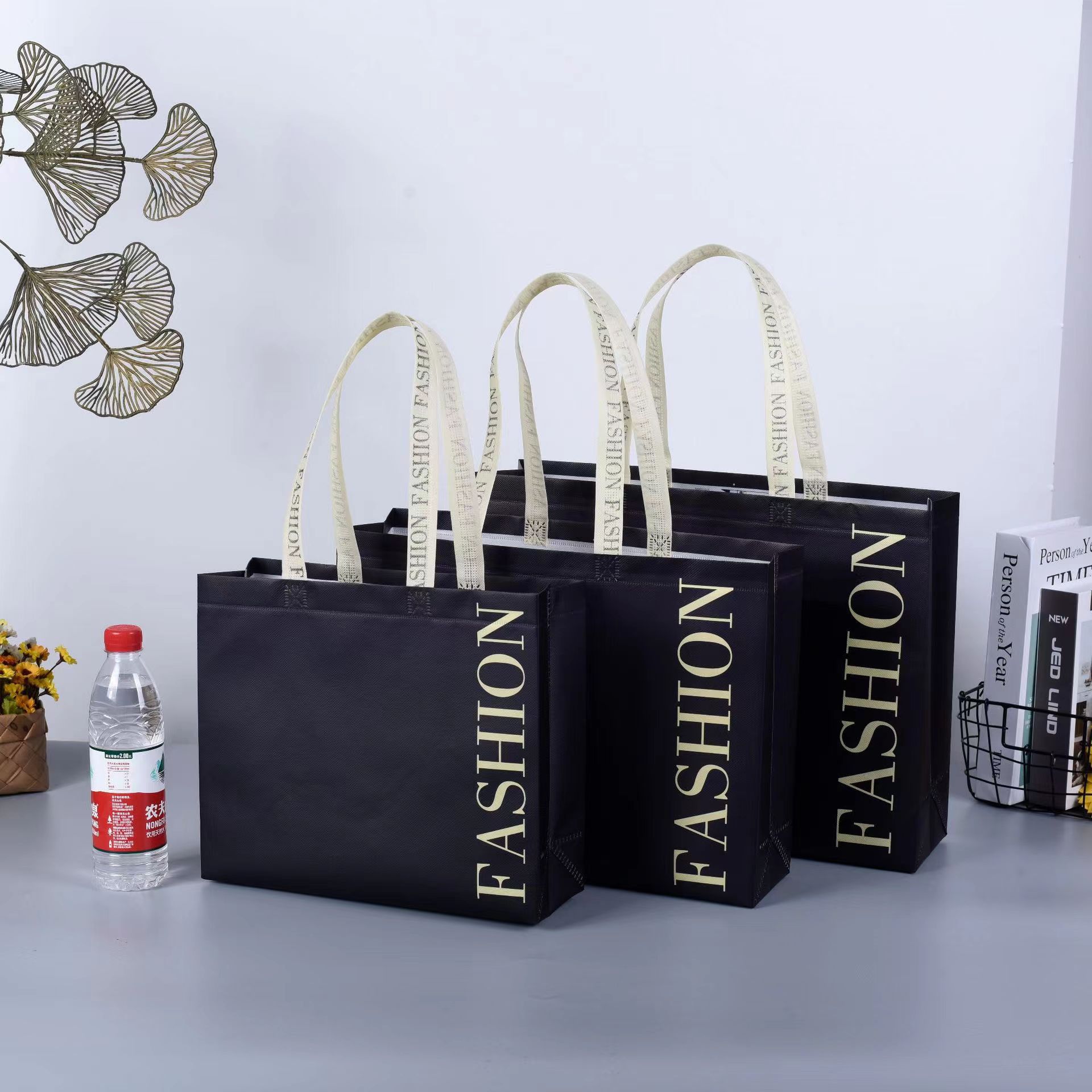 クロスボーダースポット黒不織布バッグカスタムロゴ衣料品店靴環境に優しいラミネートショッピングバッグハンドバッグ