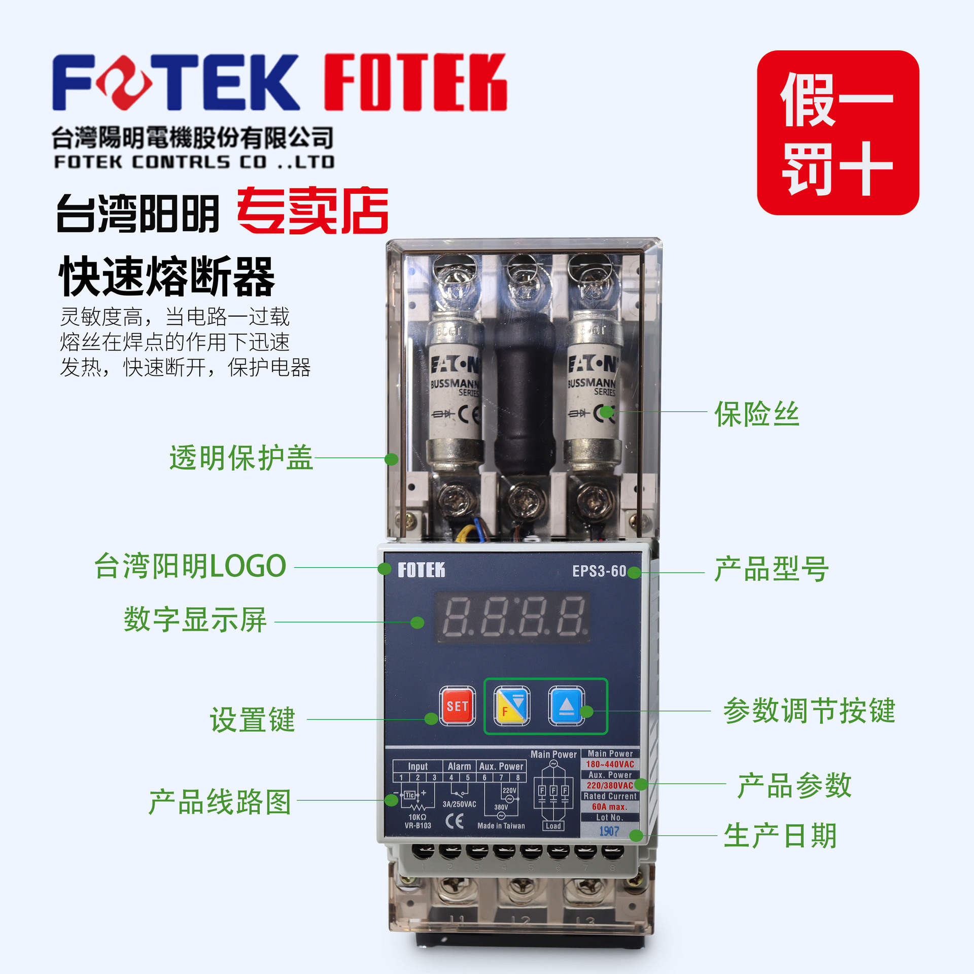 台湾陽明FOTEK三相三線デジタル式全機能パワー調整器EPS3-60/80