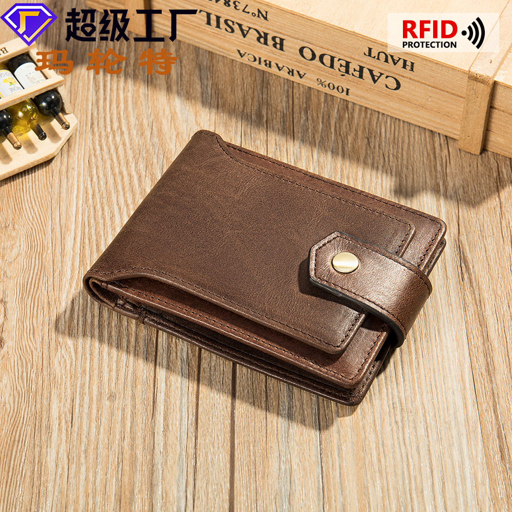 マーレット2023新型トップ牛革財布男性用防犯カードバッグ磁気防止財布長財布小銭