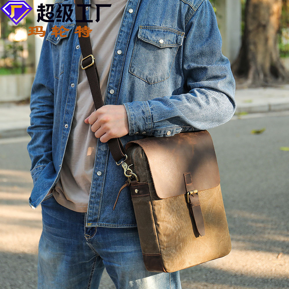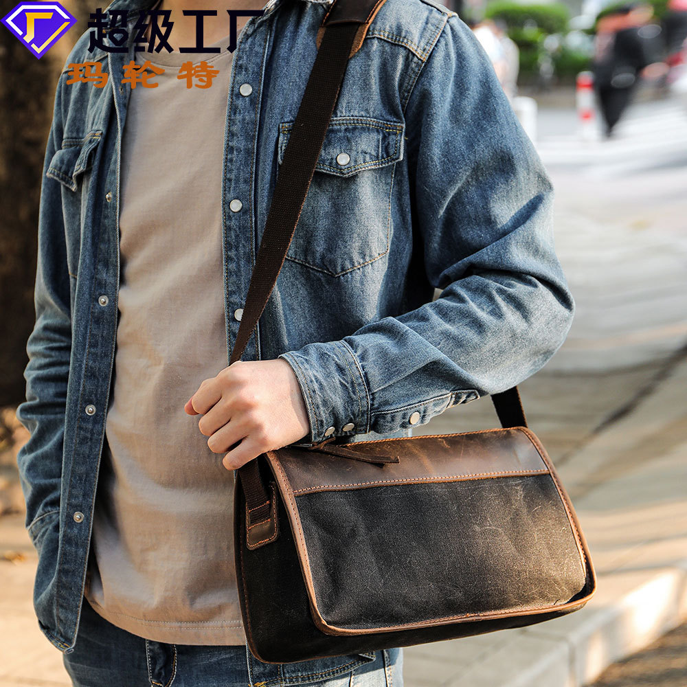 マーレットクロスボーダーメンズバッグシングルショルダーバッグ本革メンズバッグトップ層牛革シングルショルダーバッグ男性用メンズバッグ