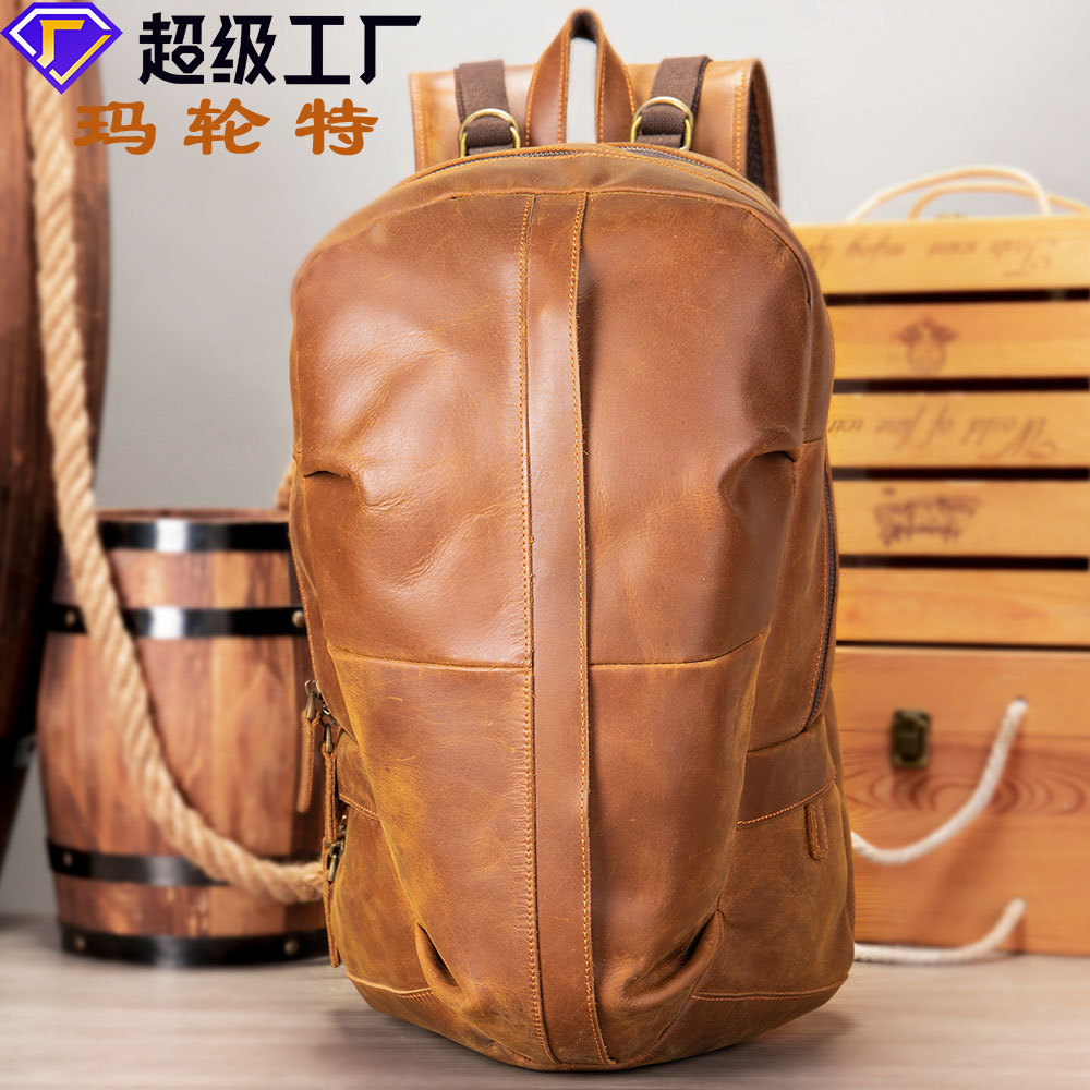 馬輪特クロスボーダーアウトドアリュックサック本革登山バッグ狂馬皮カバン中学生ins高品質カバンブーム