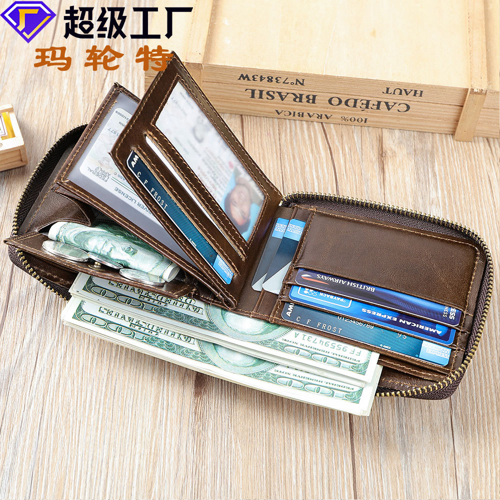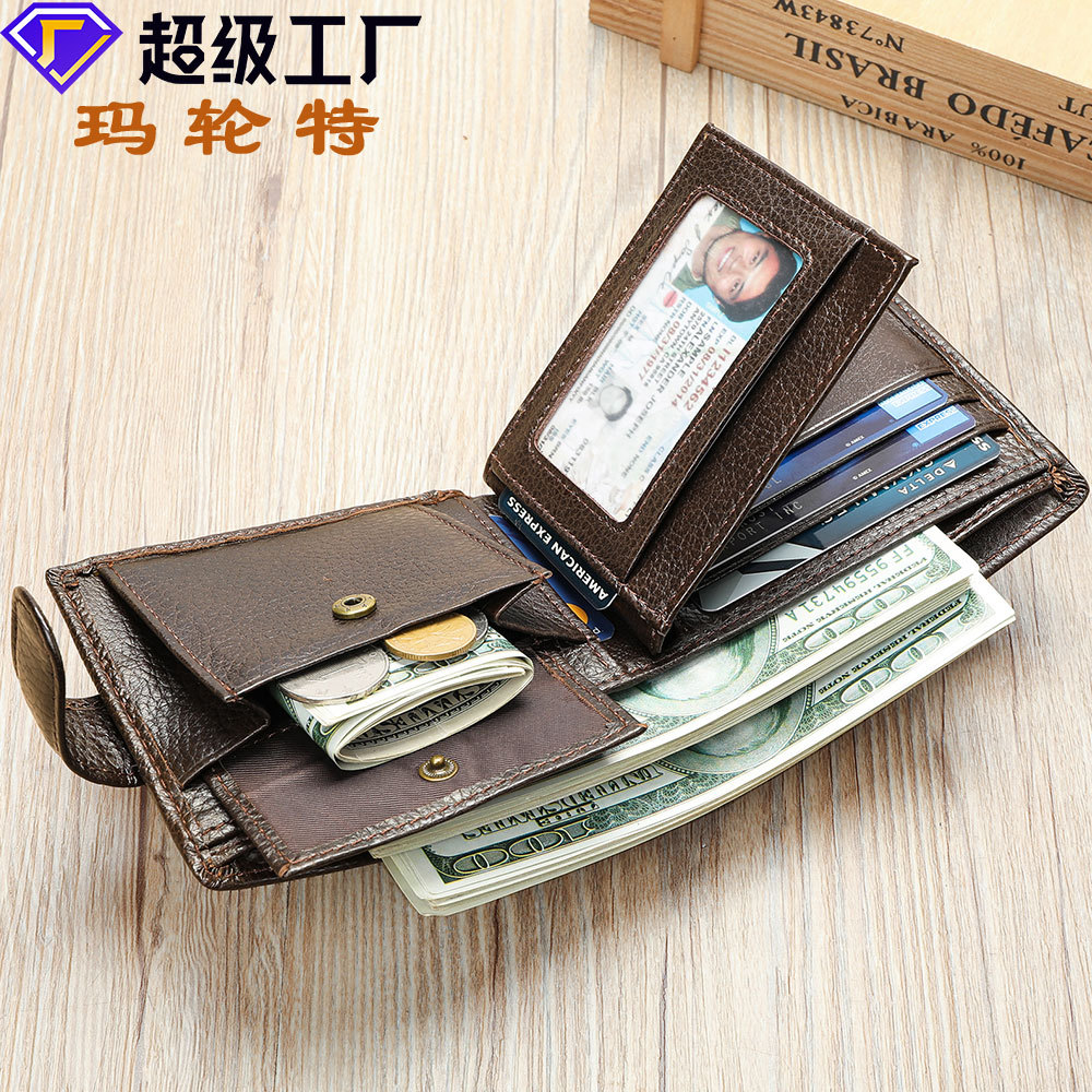 マーレット手作り牛革財布男性本革ショートタイプ防犯ブラシ財布大容量ファッション外国貿易財布男