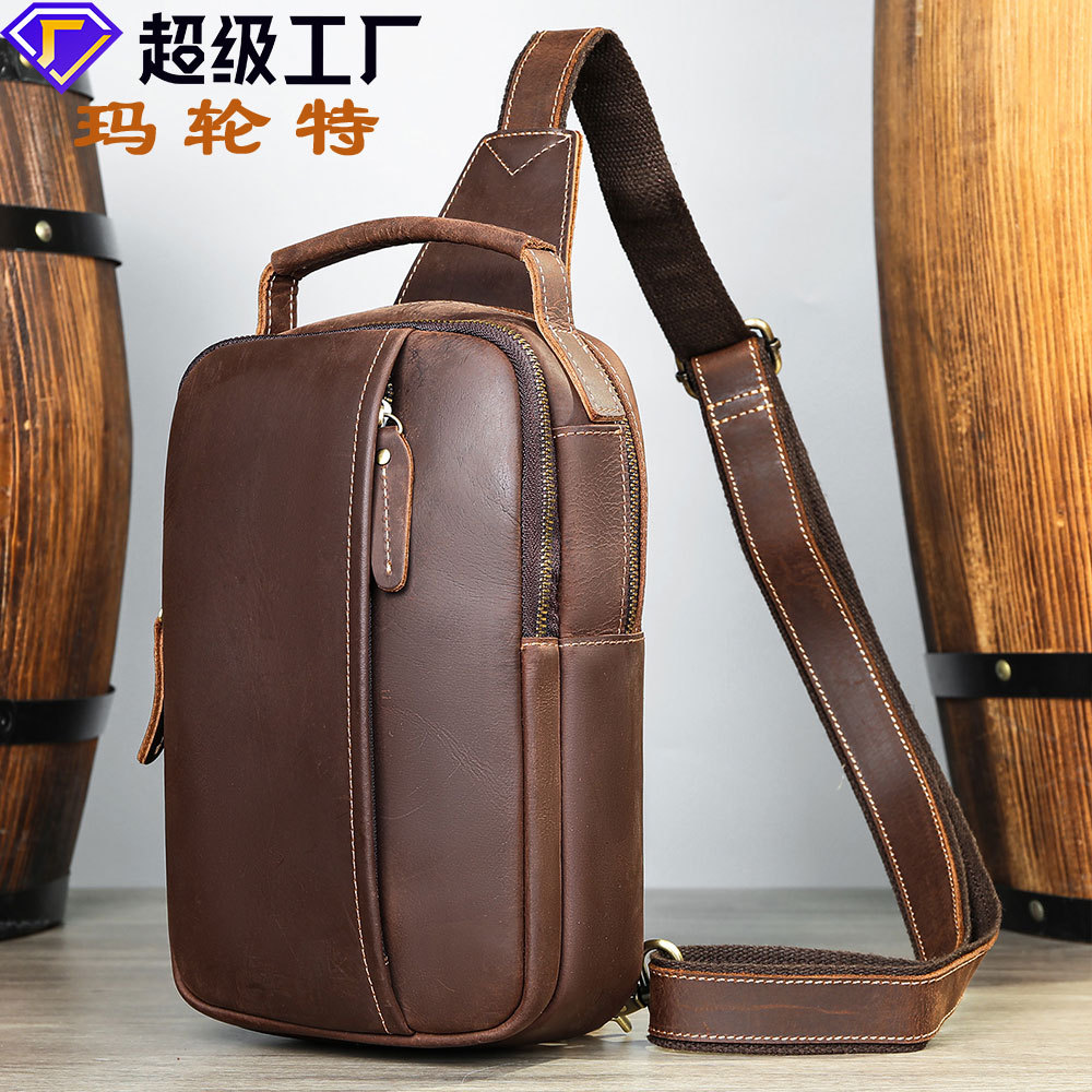 瑪輪特新作本革チェストバッグメンズカジュアルレトロ牛革斜めがけバッグメンズファッションchest bag現物