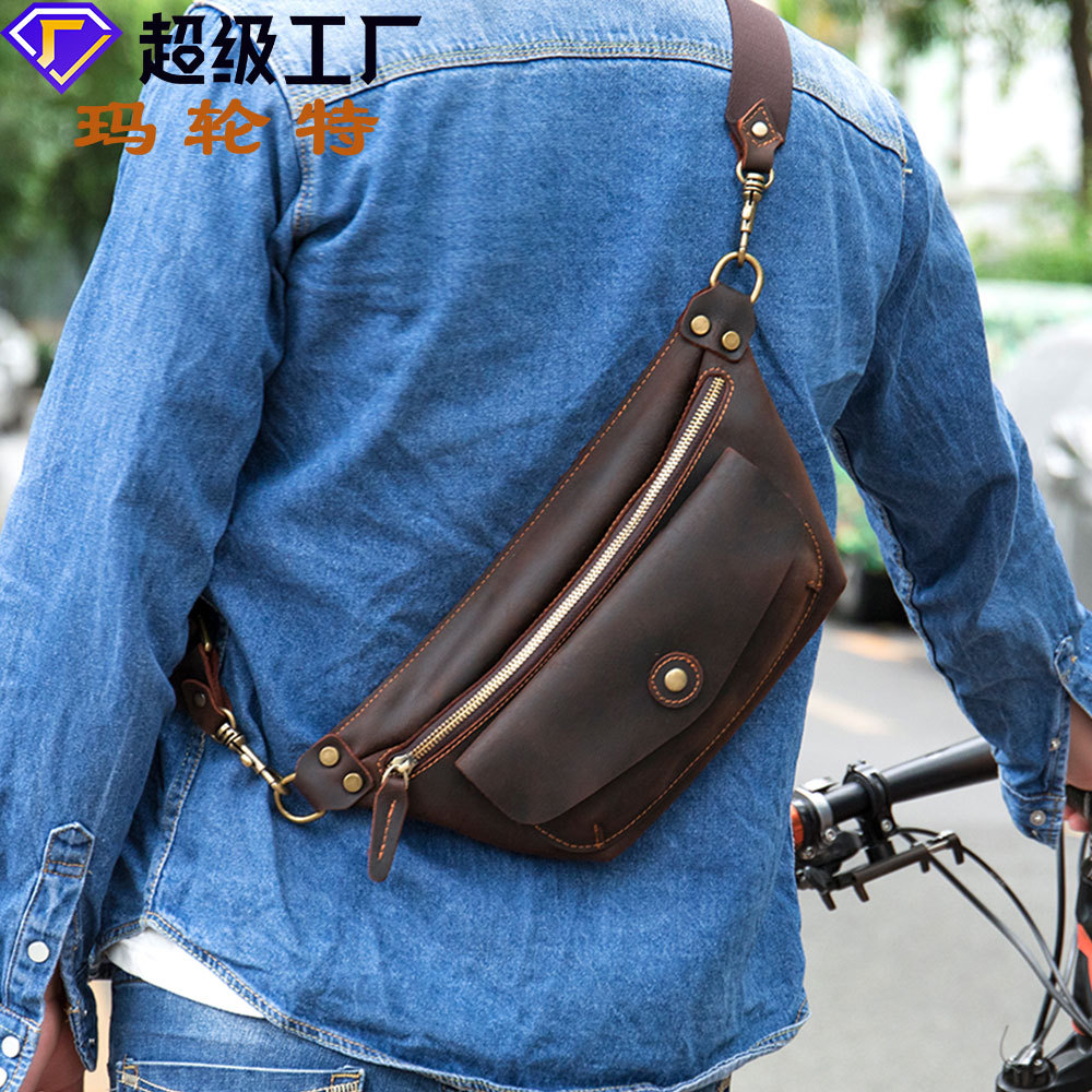 2022新型狂馬皮男式バックパック男型本革斜めバッグファッションレトロアウトドア男胸バッグブーム