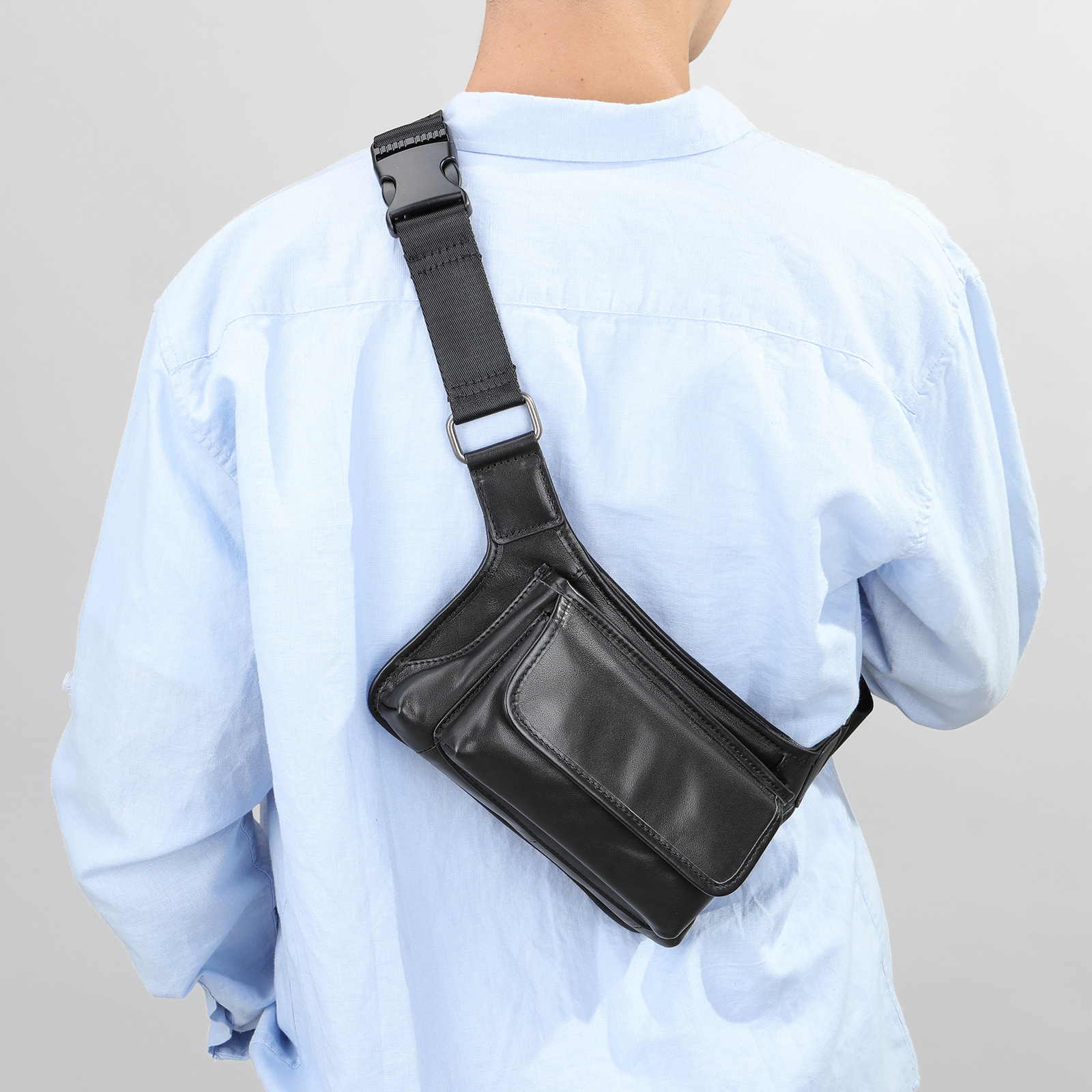 馬輪特新型本革男性胸包頭層牛革斜め包純手車縫合線伸縮ハンドルウエストバッグ