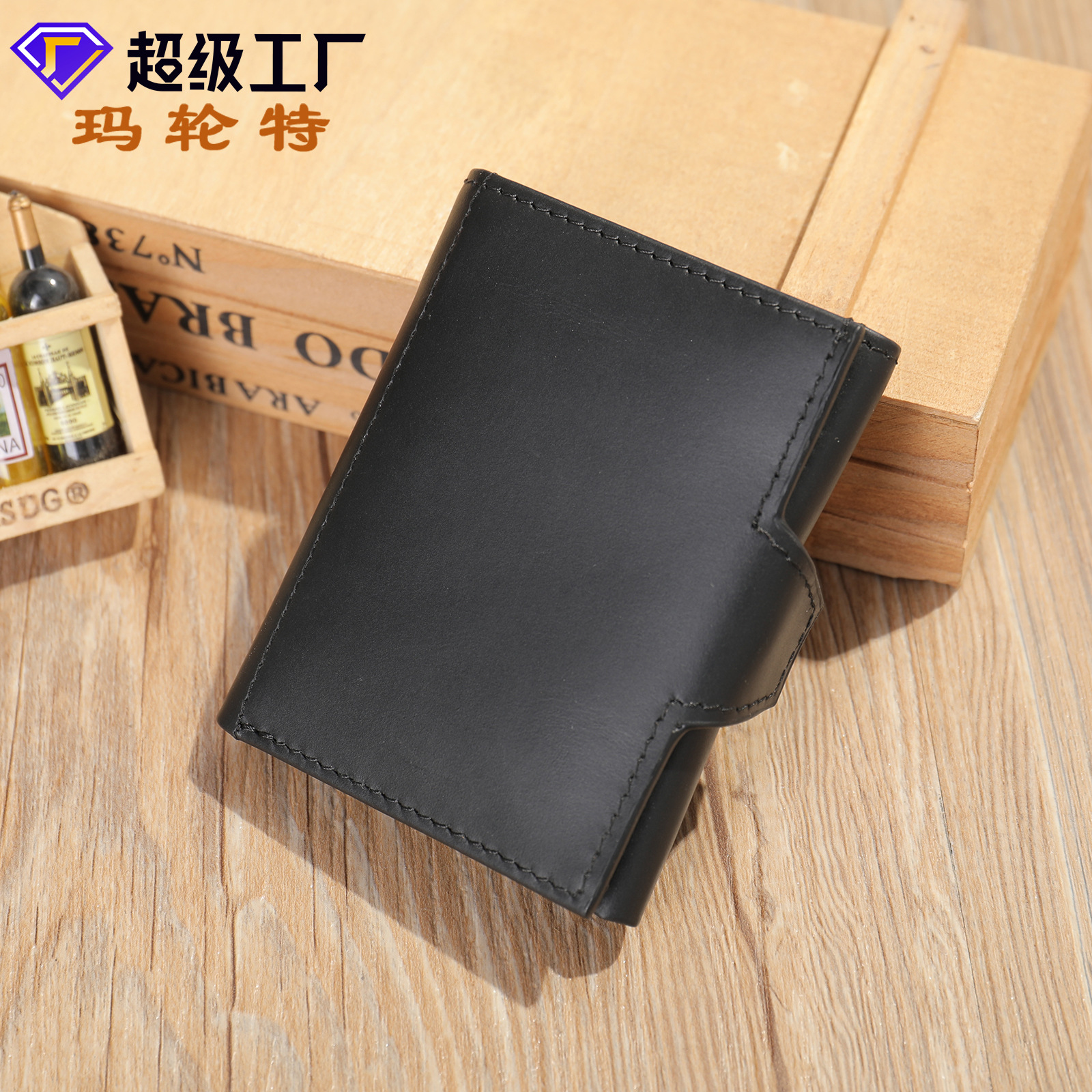 馬輪特2022新作本革男性財布ショートタイプ三つ折り狂馬皮小銭入れカジュアル牛革財布男