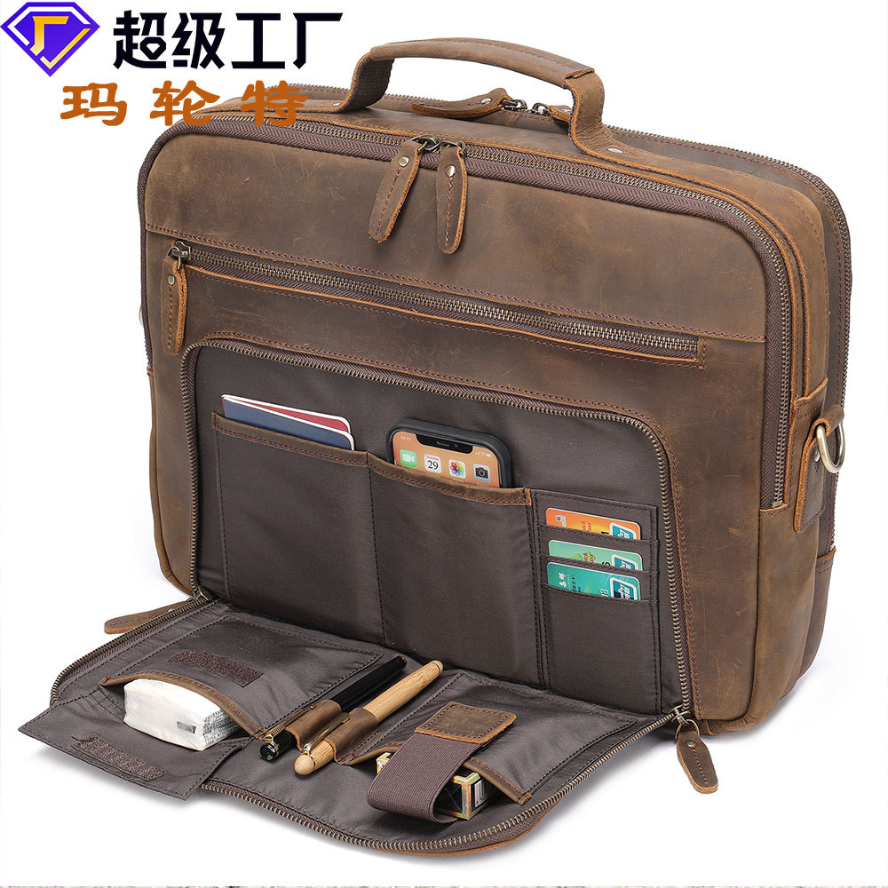 マルテン クレイジーホースレザー ショルダーバッグ メンズ トップレイヤー 牛革 パソコン ハンドバッグ ビジネス 軽量 メンズ 本革 ブリーフケース