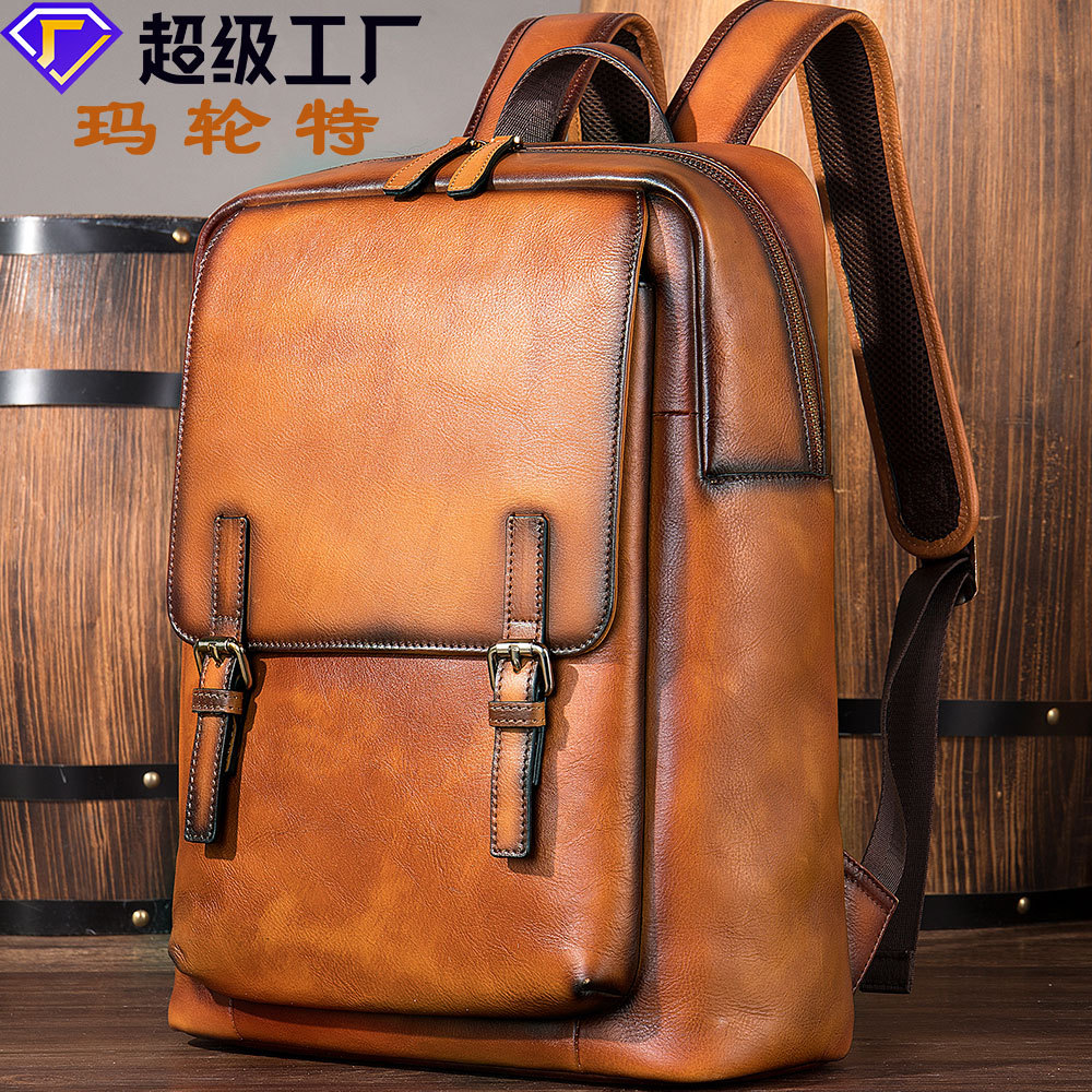 馬輪特新型本革男性リュックサックカジュアルファッション男性用バッグ大容量トップ層牛革両肩男性用リュックサック