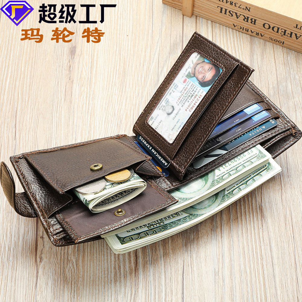 新型越境真皮財布男性の頭層牛革卸売り皮質の短いタイプは多卡位カードのカバンを見て屋台の商品の供給源を並べます。