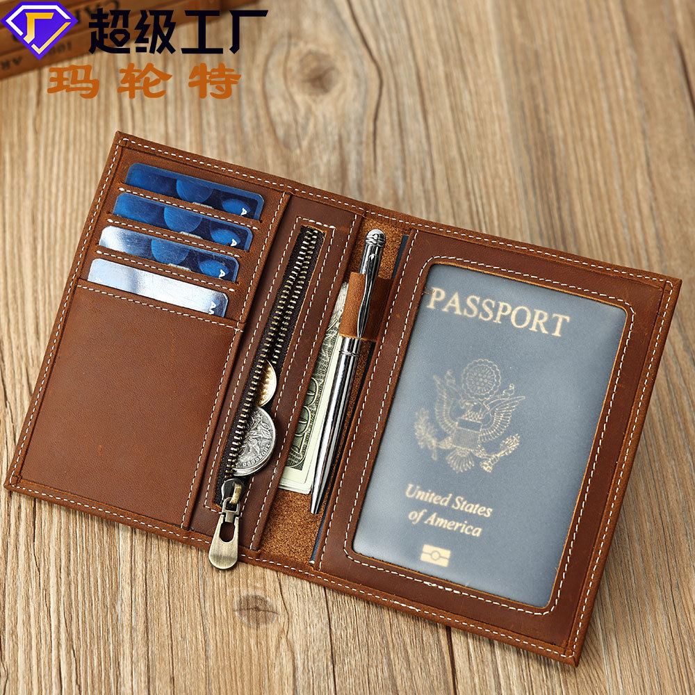 Marant レトロクレイジーホースレザーメンズ財布ハンドメイドパスポートホルダーハイエンド本革多機能カードホルダーパスポートホルダー