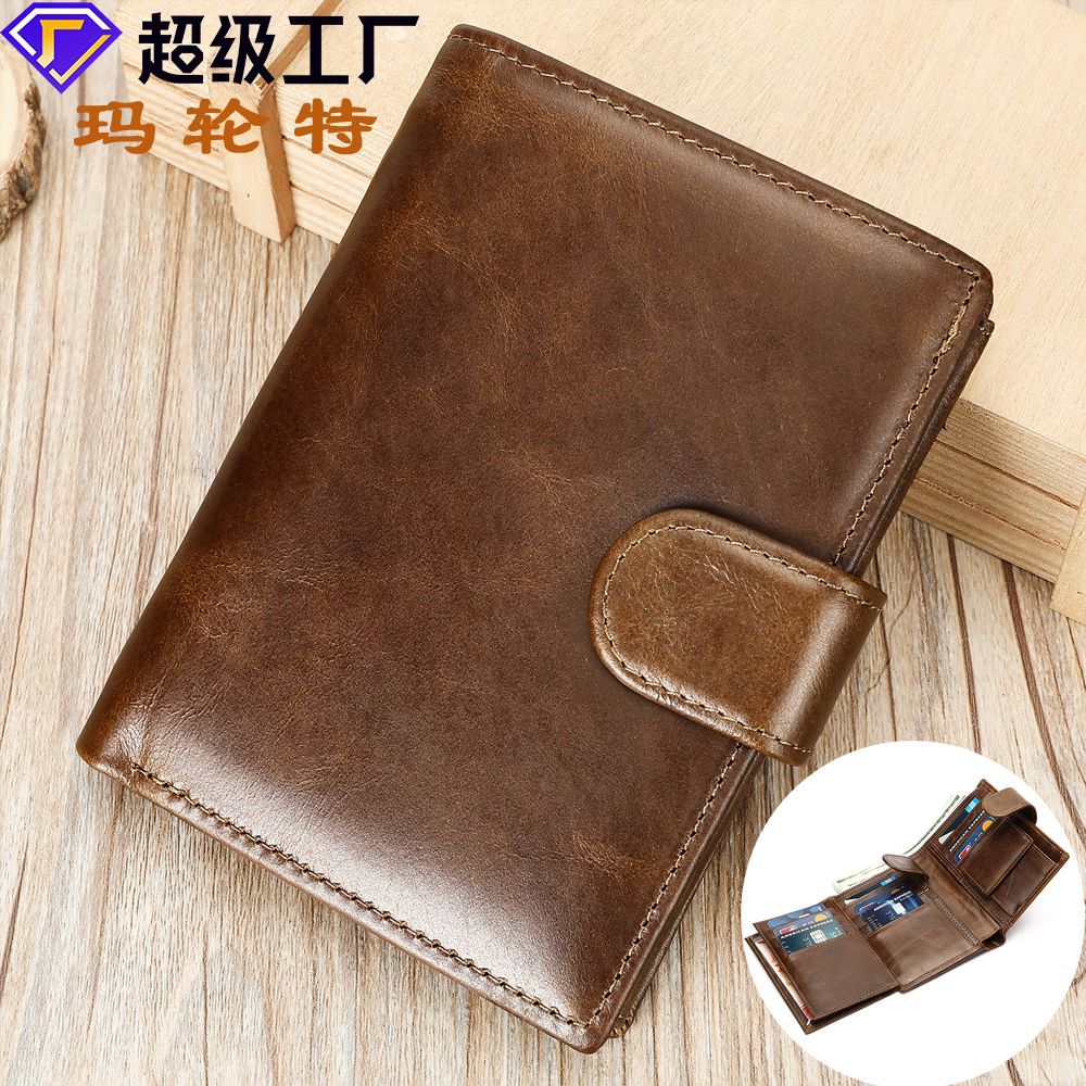 マーレット男性ショートトップ牛革財布高級感大容量ワックス革財布RFID財布