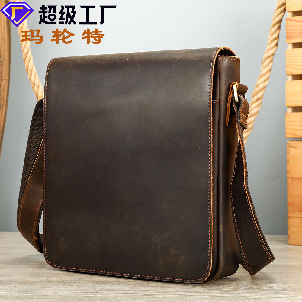 馬輪特男性郵便バッグ本革男性バッグレトロ狂馬皮シングル肩斜めショルダーバッグ頭層牛革バッグ卸売り